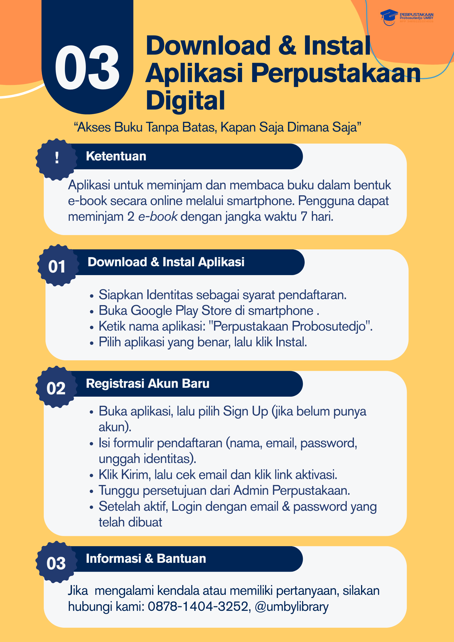 Layanan modern berbasis teknologi seperti Kolesi ebook pendaftaran online, perpanjangan buku via WhatsApp, dan usulan buku online, akses full text tugas akhir